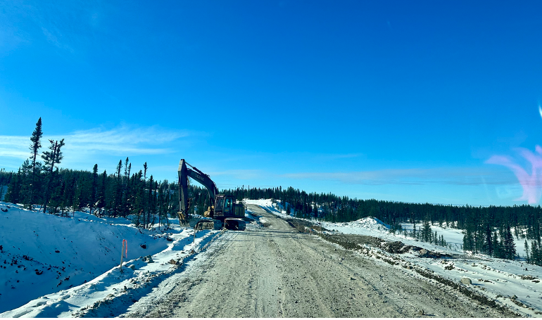 Le programme de forage de l’hiver 2024 est entièrement assisté au sol, en utilisant la route hivernale/toutes saisons construite par la Société, partant vers le sud du km 270 de la route Transtaïga pour se rendre à la pegmatite à spodumène CV5 (figures 3, 4 et 5). La portion hivernale de cette route a été prolongée vers l’ouest en soutien aux travaux de forage sur la pegmatite à spodumène CV13. Aucun hélicoptère n’est actuellement mobilisé sur le site grâce à ces infrastructures qui ont été mises en place et qui sont maintenant utilisées quotidiennement.