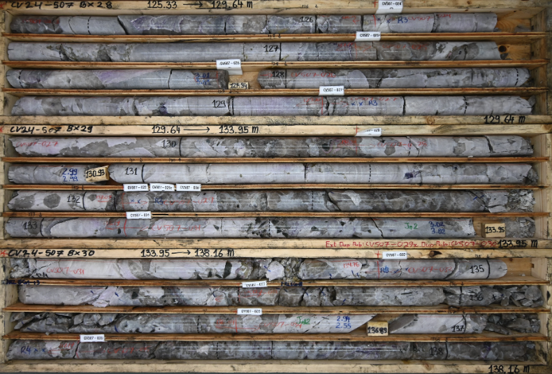 Le programme de forage de l’hiver 2024 totalisait 62 518 m (166 sondages), incluant 50 961 m (121 sondages) à CV5 et 11 557 m (45 sondages) à CV13, dont 32 149 m (83 sondages) restent à publier– 27 611 m (67 sondages) à CV5 et 4 538 m (16 sondages) à CV13. Cela inclut plusieurs sondages de délimitation ciblant la zone à haute teneur Vega nouvellement découverte à CV13, dont les résultats restent à venir.