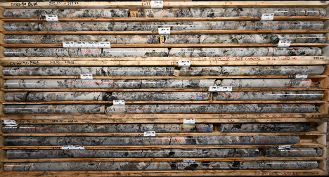 Figure 3: Well mineralized drill core from the secondary pegmatite situated adjacent to the southwest of the principal pegmatite body (CV5) – drill hole CV22-040 at 343.4 m to 360.7 m depth
