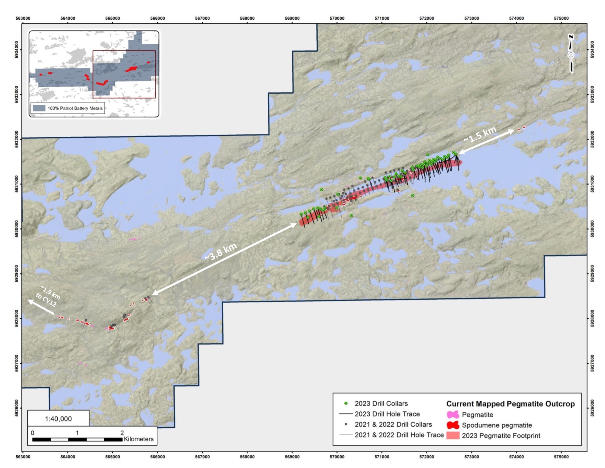 - These are the first drill holes completed to test a westward extension of the CV5 Pegmatite since summer of 2022, when spodumene pegmatite was confirmed to extend from the CV5 outcrop to the CV6 outcrop.