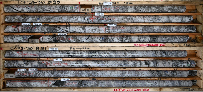 - 17.9 m at 0.69% Li2O, including 8.6 m at 1.03% Li2O (CV23-310).