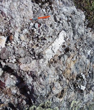 - Main outcrop approximately 5 to 40 m in width and 140 m in length