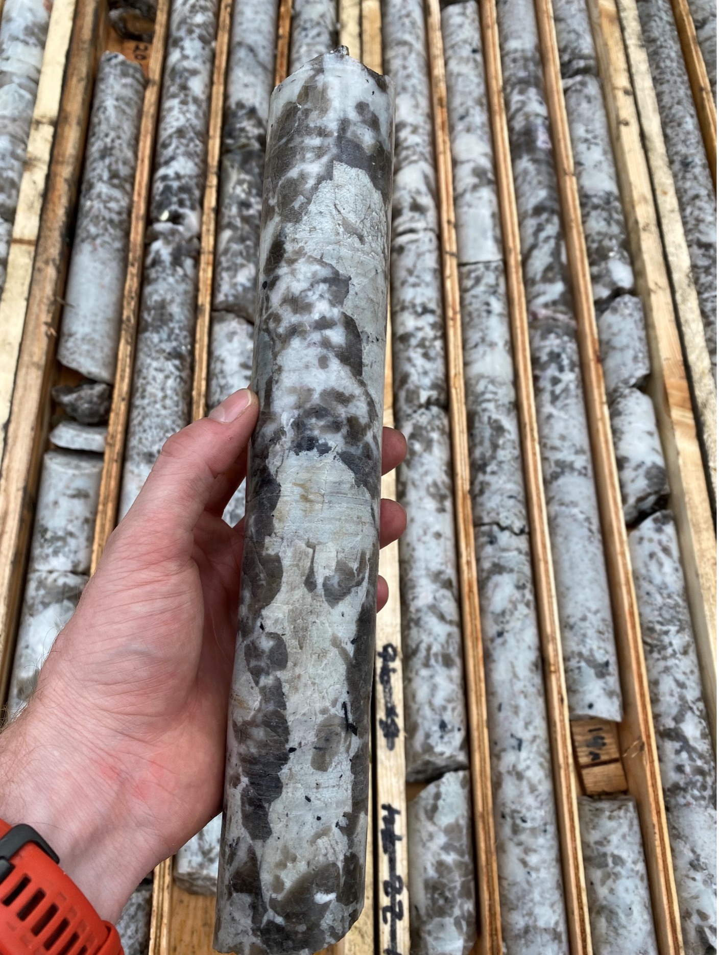 Figure 3: Coarse-grained spodumene crystals in drill hole CV22-077 at the CV13 pegmatite cluster