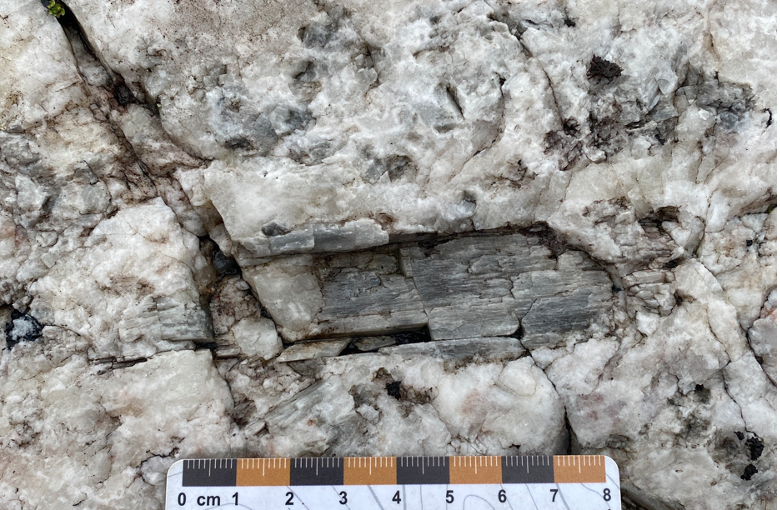 Figure 2: Spodumene crystal at CV14, a new spodumene pegmatite outcrop discovery in 2023.