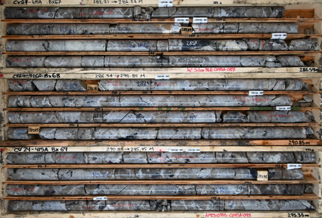 - Results for 4,538 m (16 holes) remain to be reported from the 2024 winter drill program – all from CV13 and including multiple step-out drill holes targeting the recently discovered/announced high-grade Vega Zone.