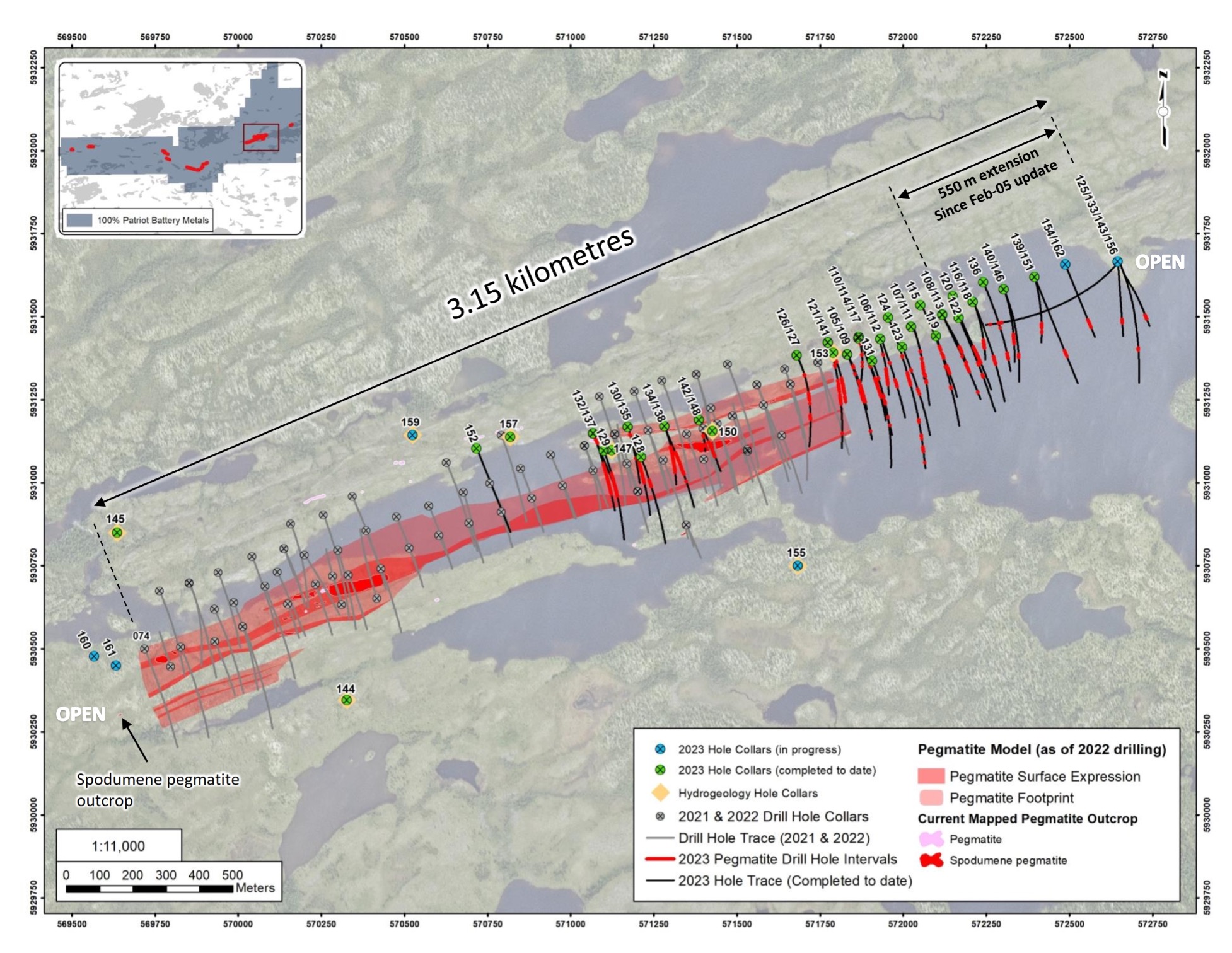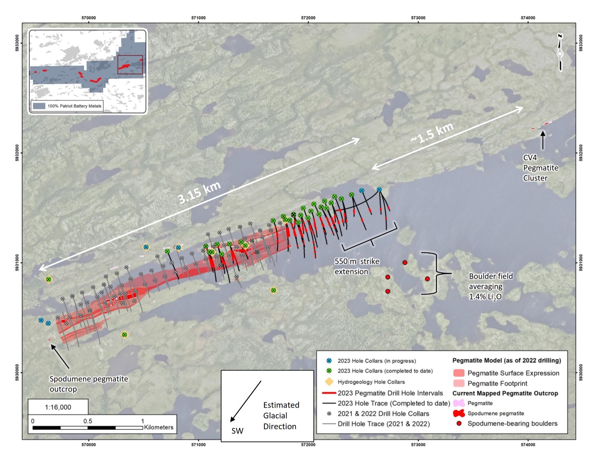 Patriot Extends Strike Length of the CV5 Pegmatite to 3.15 km, Corvette Property, Quebec, Canada