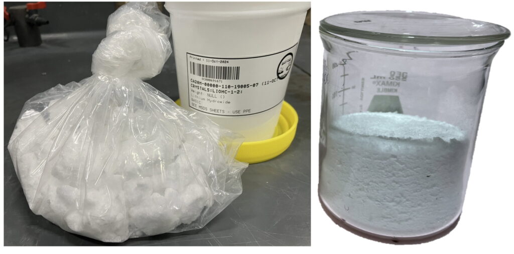 Figure 1: Marketable, on spec, battery-grade lithium hydroxide monohydrate produced from the CV5 Spodumene Pegmatite.