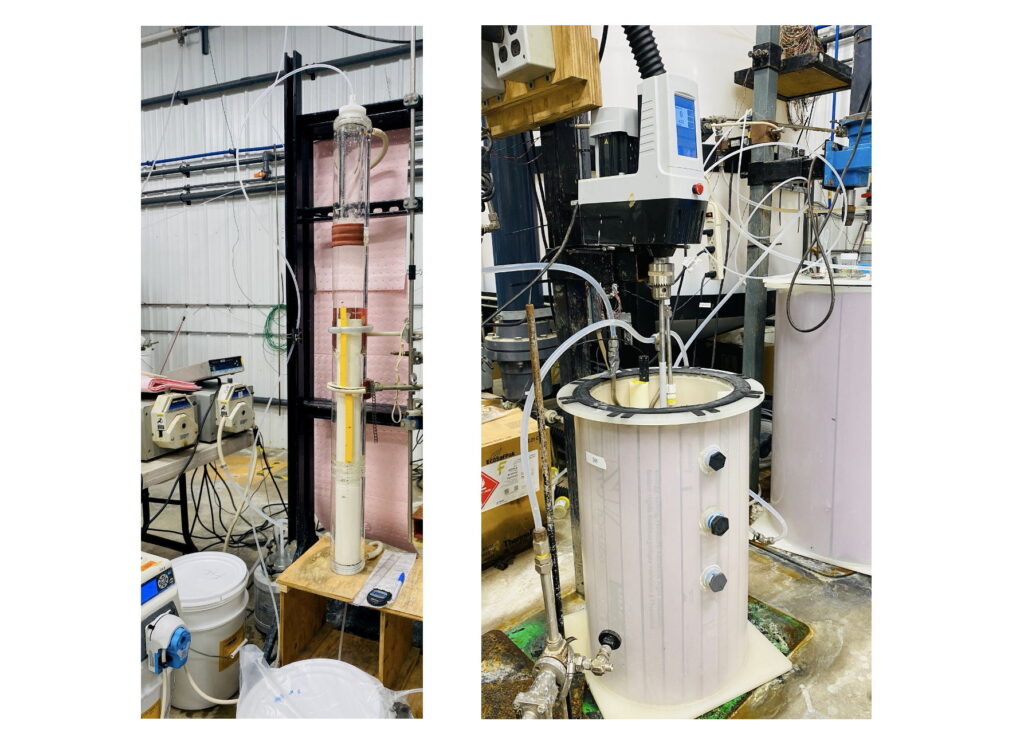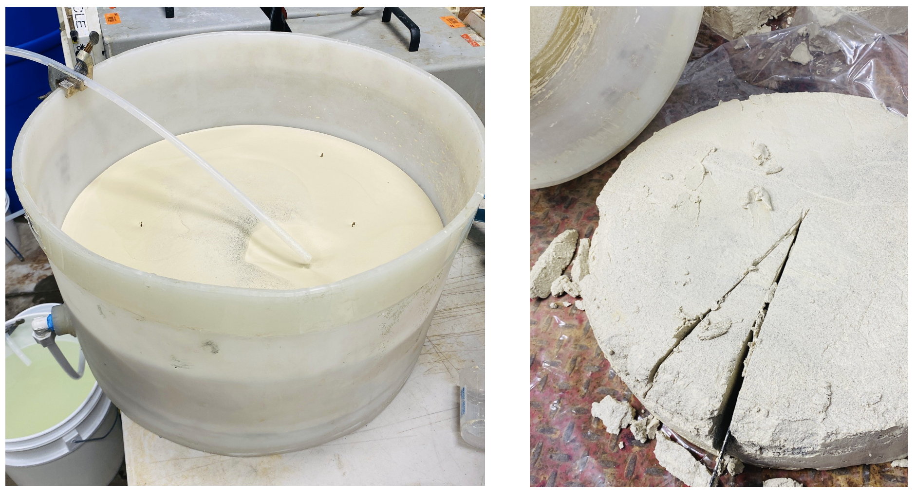 Figure 4: Filtering stage and resultant filter cake post water-leaching and impurity removal.