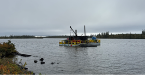 Figure 5: Barge-based drill hole CV24-697 over shallow glacial lake at CV5.