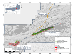 1 Shaakichiuwaanaan (CV5 & CV13) Mineral Resource Estimate (80.1 Mt at 1.44% Li2O and 163 ppm Ta2O5 Indicated, and 62.5 Mt at 1.31% Li2O and 147 ppm Ta2O5 ppm Inferred) is reported at a cut-off grade of 0.40% Li2O (open-pit), 0.60% Li2O (underground CV5), and 0.80% Li2O (underground CV13) with an Effective Date of August 21, 2024 (through drill hole CV24-526). Mineral Resources are not Mineral Reserves as they do not have demonstrated economic viability.